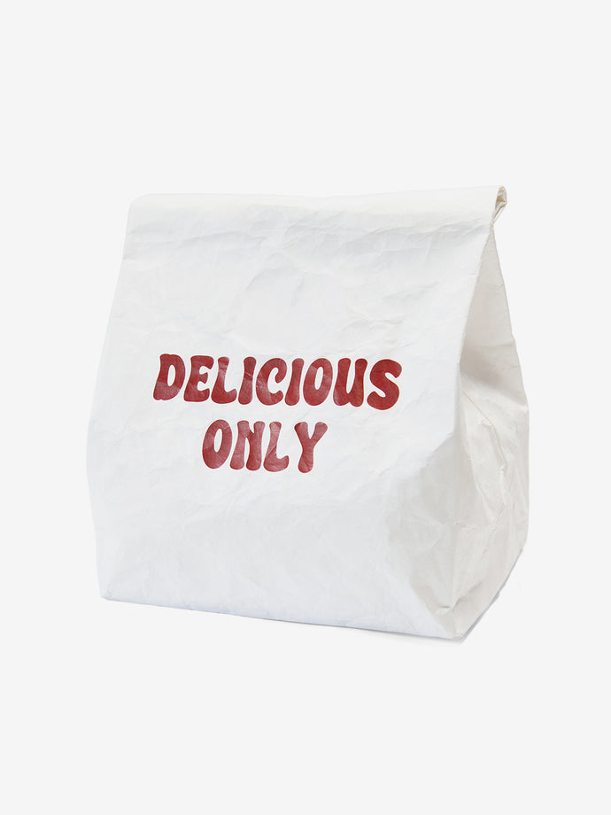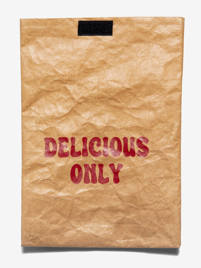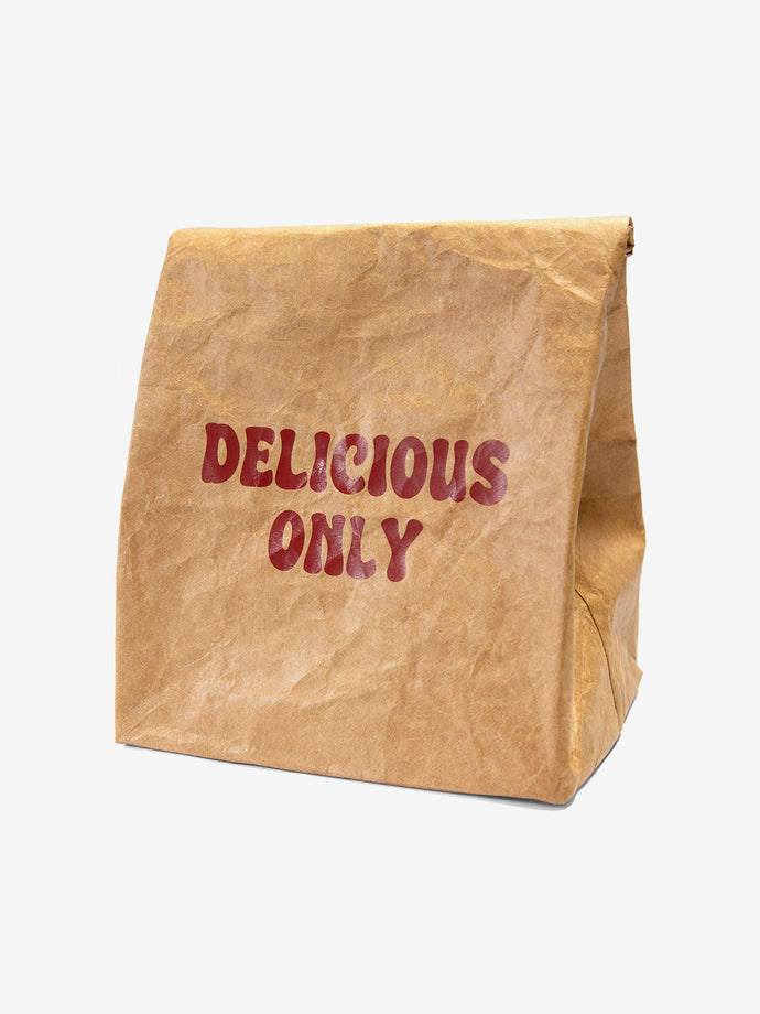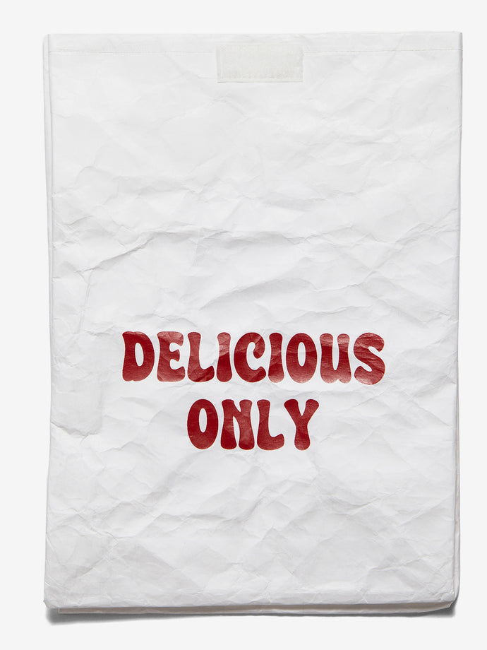 軽量かつ耐水性・耐久性に優れた紙のような表情のポリエチレン素材を使用し、J’s Vendorのラージサイズのテイクアウトにも対応する絶妙なサイズ感に設計。不織布の裏地付きで丈夫です。