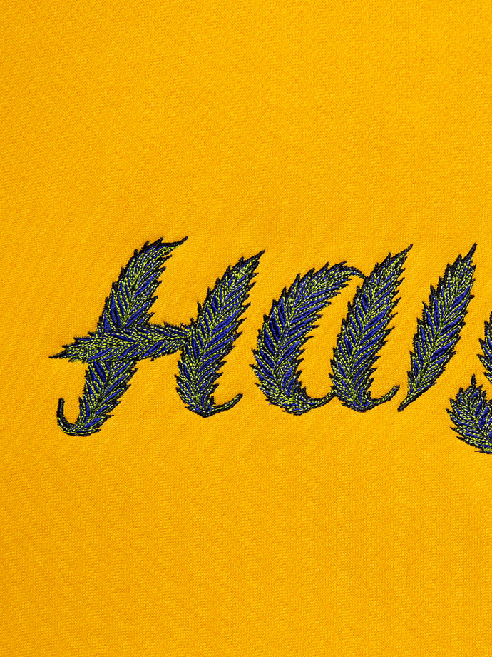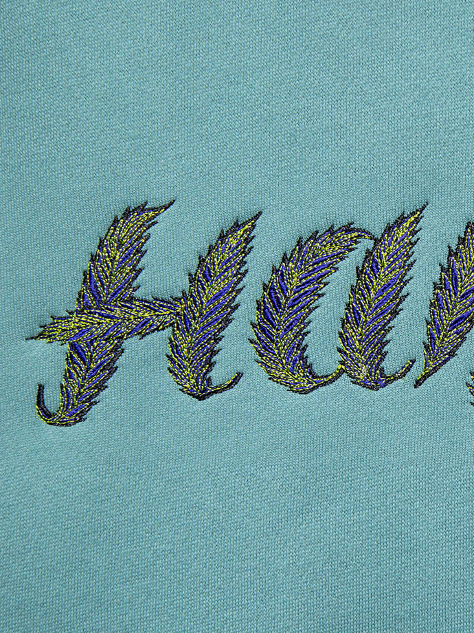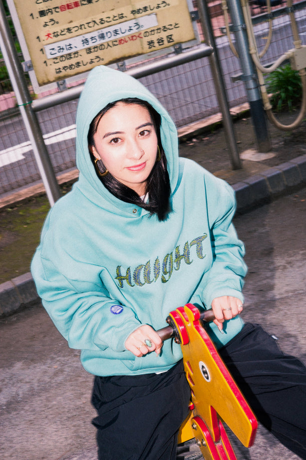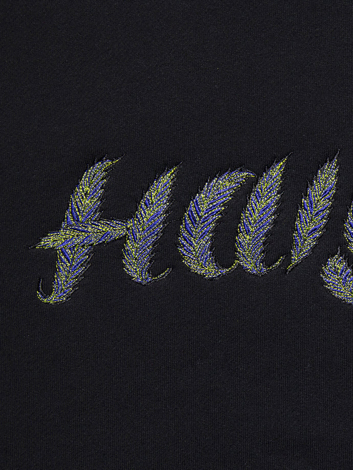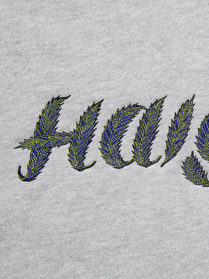 GRINDLODGEグラフィックデザイナー"KTCN"作、リーフモチーフのHAIGHTロゴを繊細な刺繍で立体的に再現。独特なタッチと色使いが、アートピースのような存在感を放つ。ボディは裏起毛のコットンスウェット素材を使用。身幅・袖にゆとりを持たせたブランドオリジナルのルーズシルエットで、1枚でもスタイリングが決まる仕上がり。