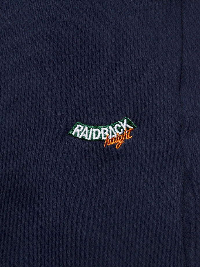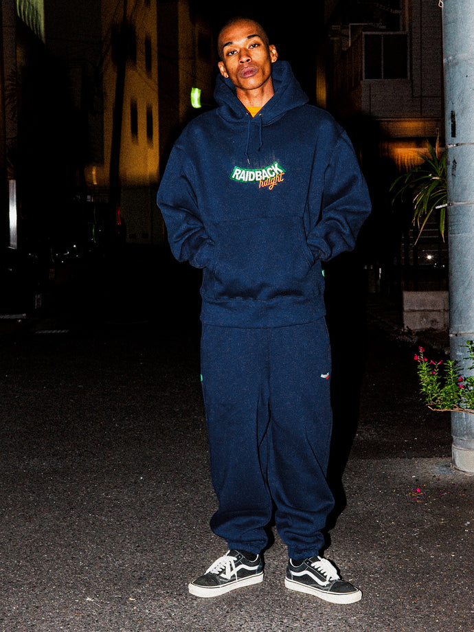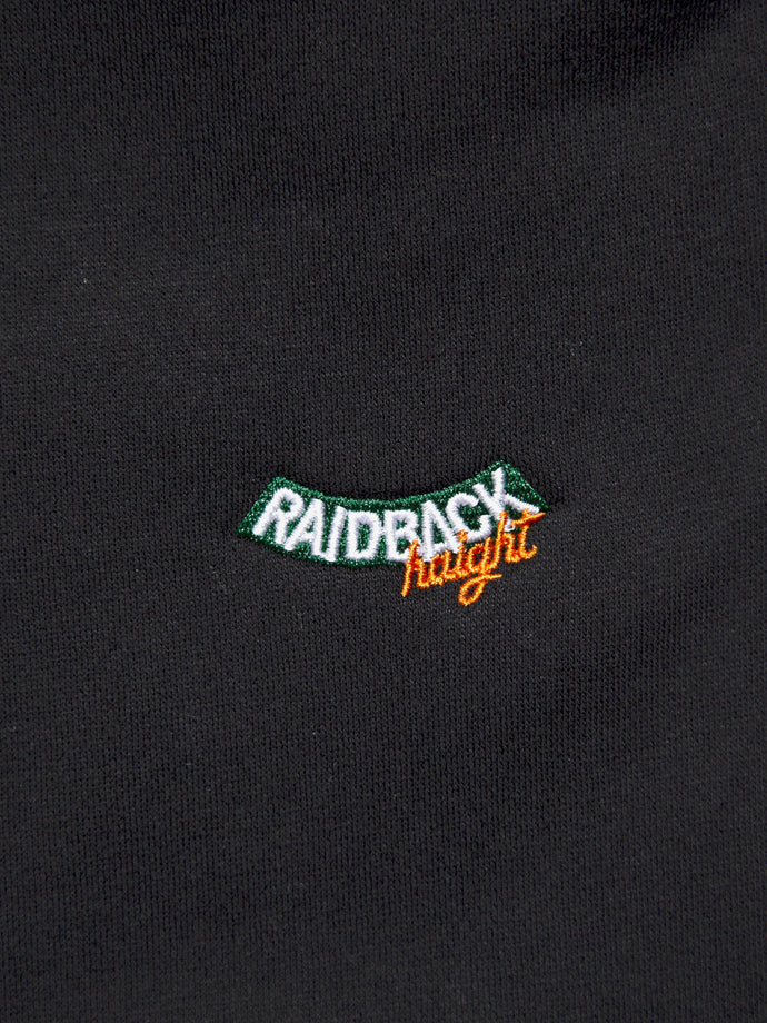 raidback® fabricを象徴する逆アーチのロゴをワンポイント刺繍。HAIGHTオリジナルのワイドシルエットに、11.5oz裏起毛生地を採用し、厚みとハリのある仕上がりに。