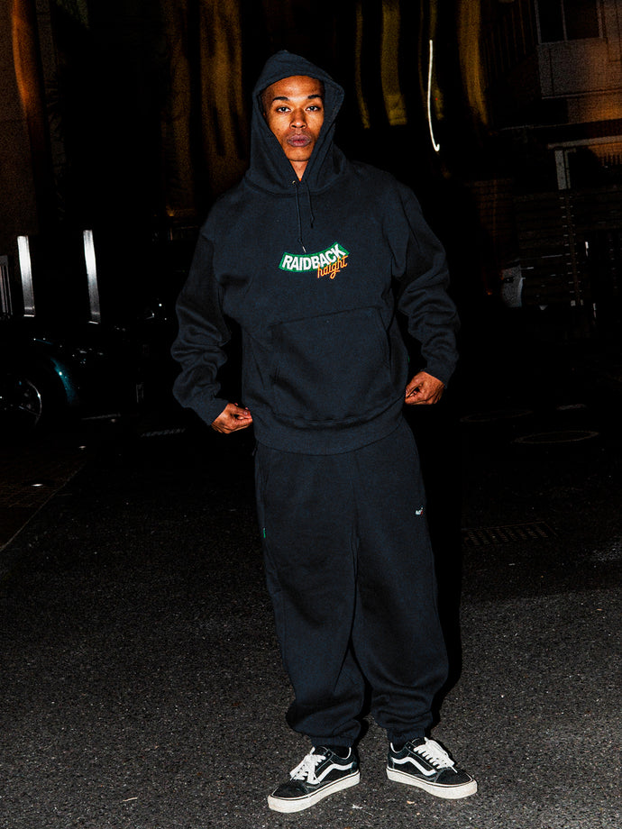 「NITRO MICROPHONE UNDERGROUND」のGORE-TEXこと“LA TORA JACKSON” がディレクションを手がける「raidback® fabric」とのコラボレーションスウェットパンツ。