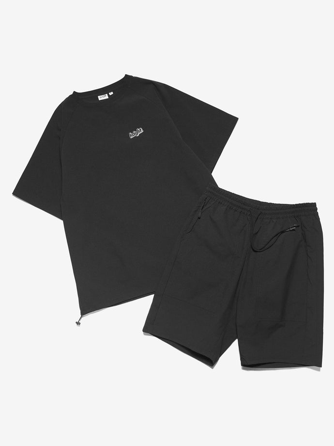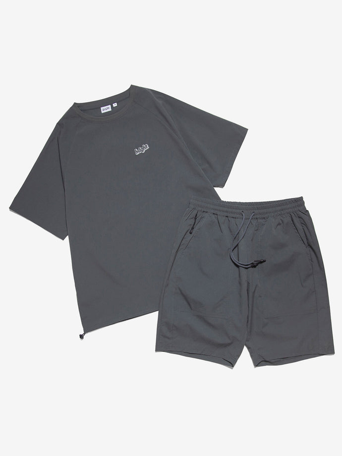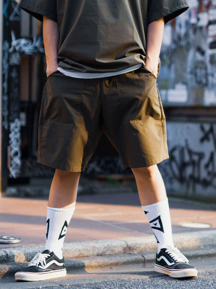マットでシャリ感のあるリップストップ生地は肌触りもよく、ゆったりとしたシルエットと適度なストレッチが快適さ与える。