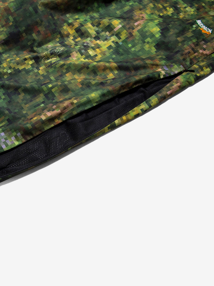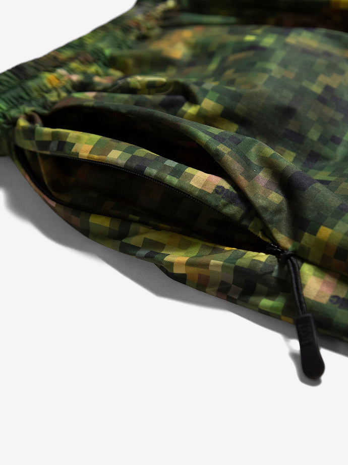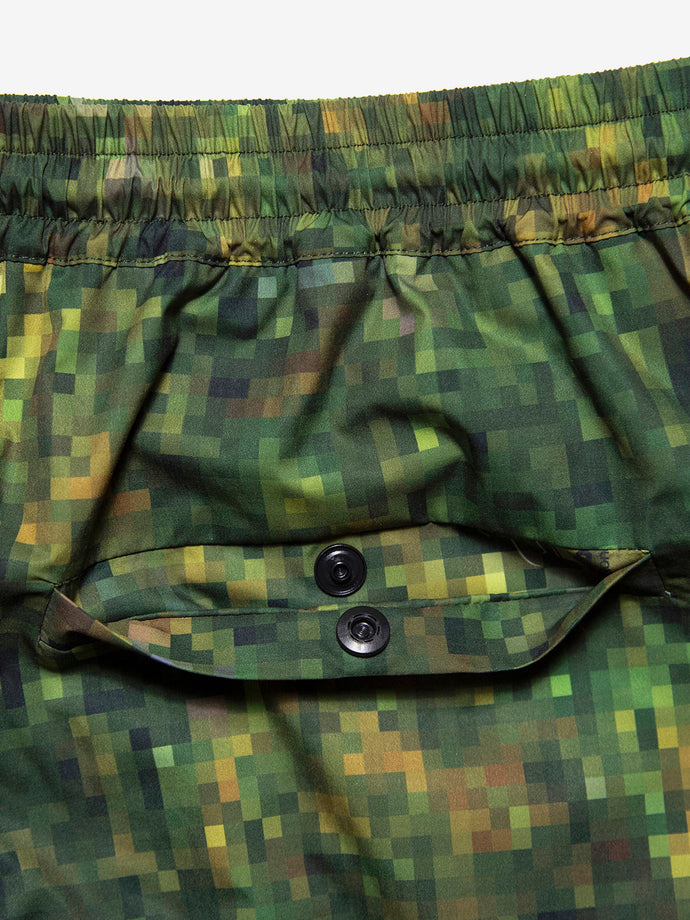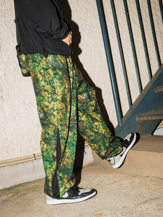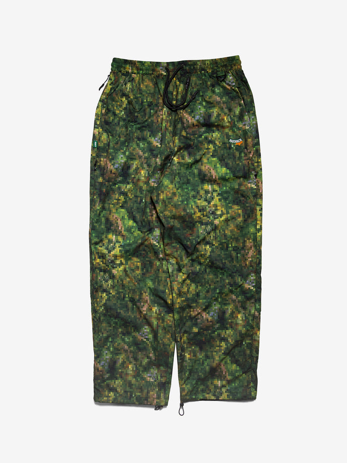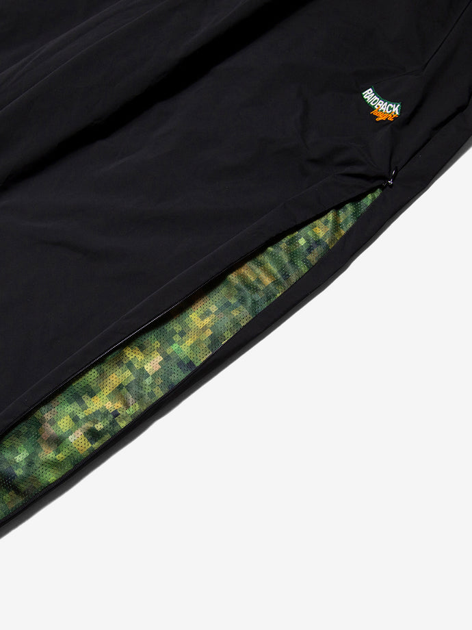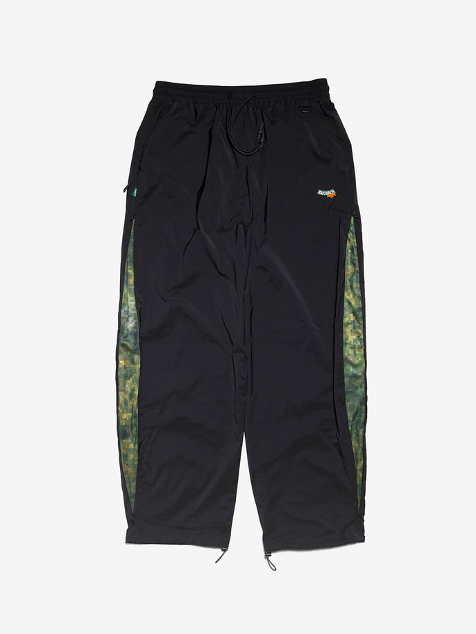 ブランドを象徴するパターン、ピクセルのカモフラージュを使ったトラックパンツ。両サイドに大きく開閉できるベンチレーションを配置。BLACKのほうはメッシュにピクセルカモを配したデザインです。(CAMOはブラック)