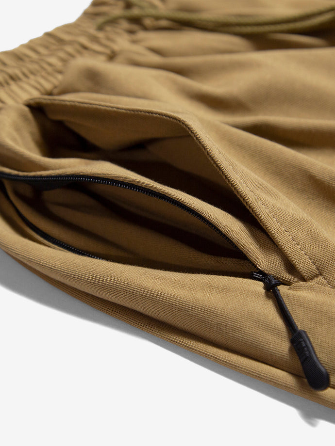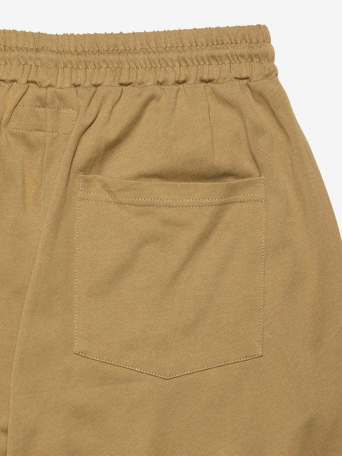 柔らかく通気性に優れたコットン生地は、肌なじみもよく、ストレスフリーな穿き心地。左裾には立体感のある厚盛りプリントで施したブランドロゴをワンポイントに。リラックスシーンから街歩きまで、幅広く活躍する一本です。
