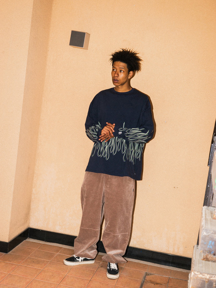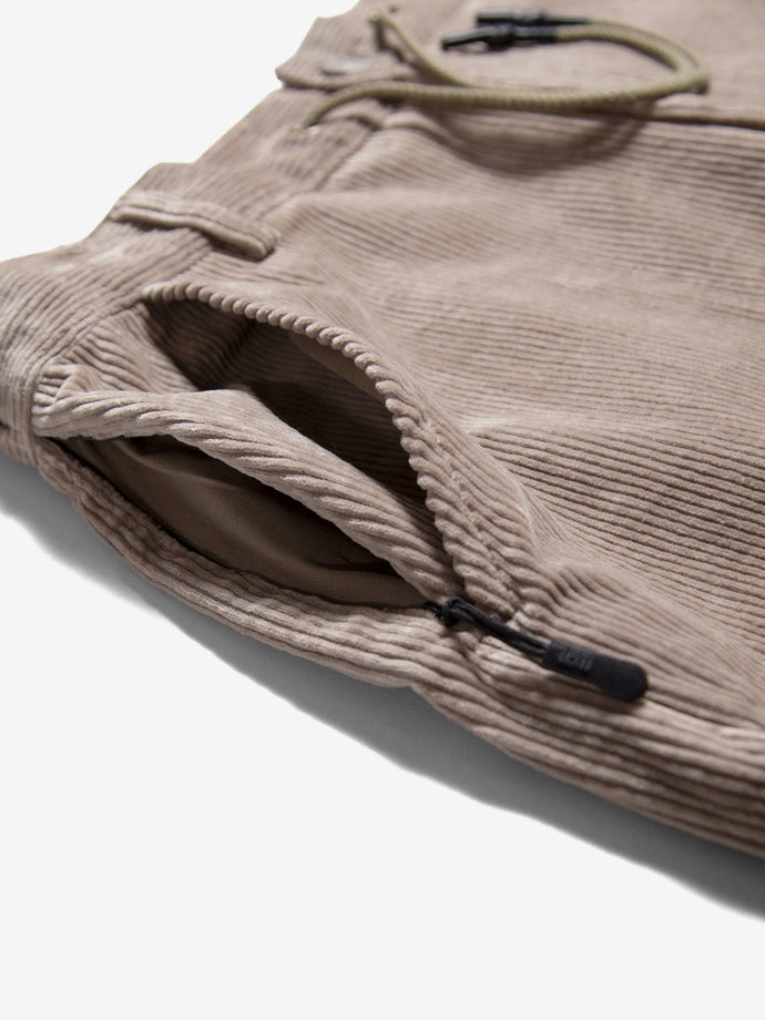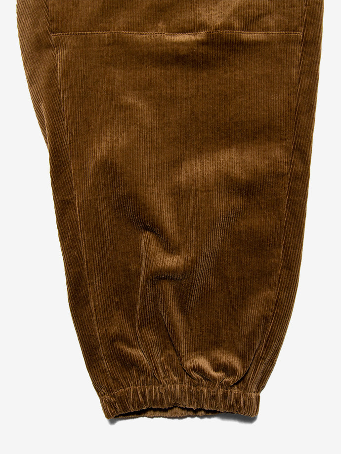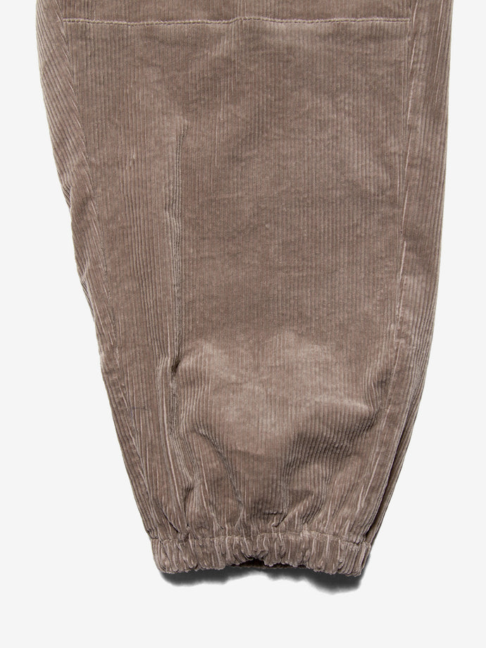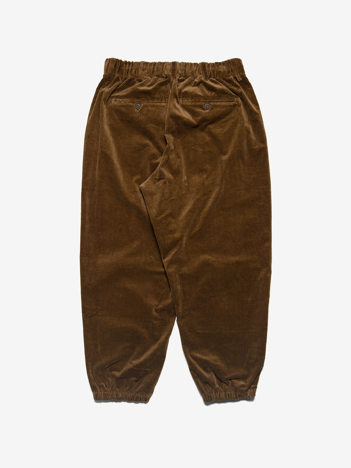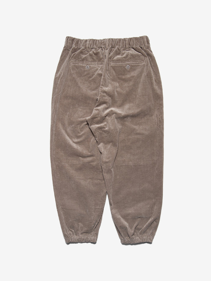コットン100%の細めの畝立ちが美しいコーデュロイ生地を使用し、柔らかさと適度な厚みで快適な穿き心地に。裾はジョガー仕様で、全体はゆったりとしたリラックスシルエットに仕上げています。シックなカラー展開でトップスを選ばず幅広いスタイリングにマッチ。季節感を取り入れたカジュアルスタイルを演出します。