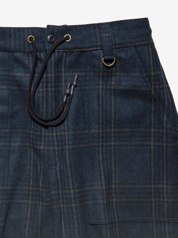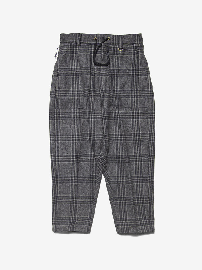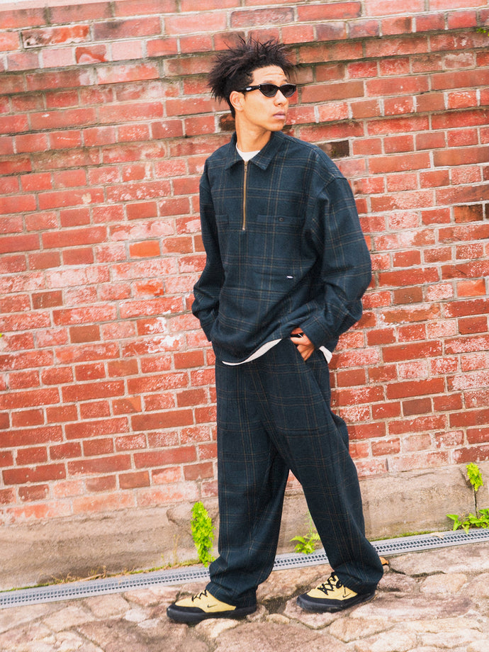 程よいハリと柔らかさを持つウール混フランネル素材を採用し、秋冬らしい表情に仕上げた一本。シルエットは、ブランドで根強い人気を誇るクラシックなベイカーパンツ型をベースに、ややゆったりとしたフィットに調整。同素材のシャツとセットアップスタイルも可能。スタイルに品とリラックスを両立させる万能な一本。
