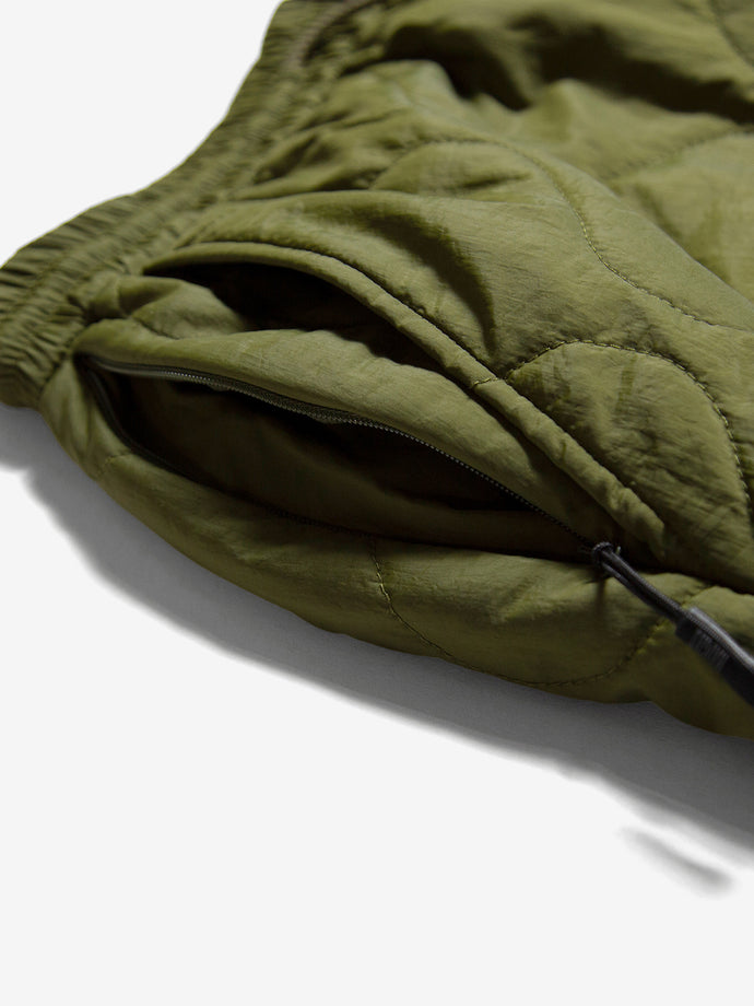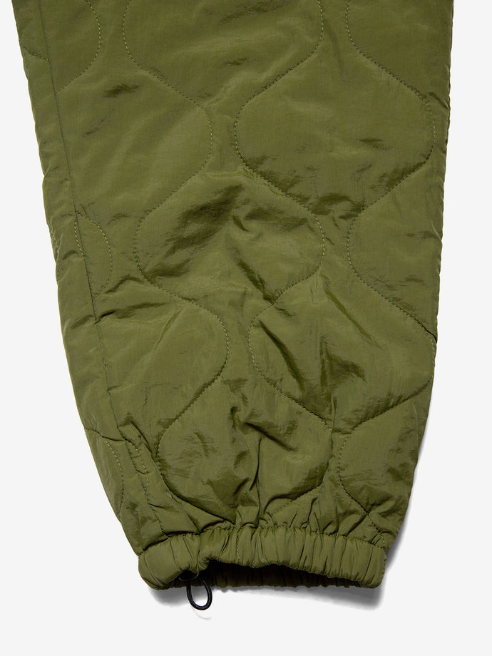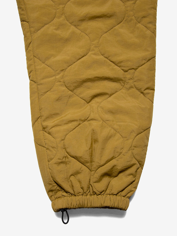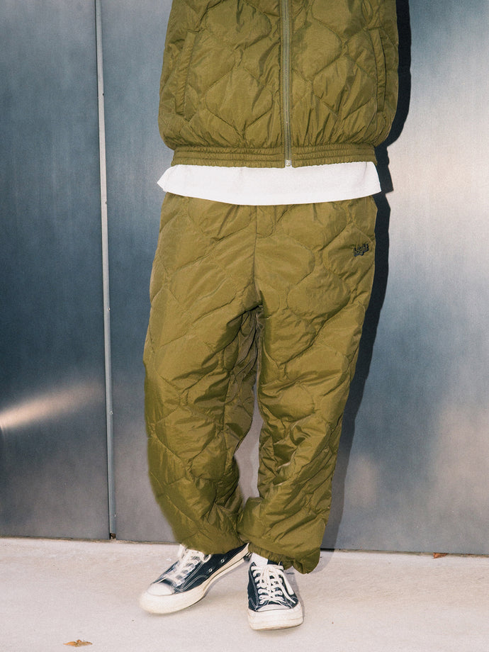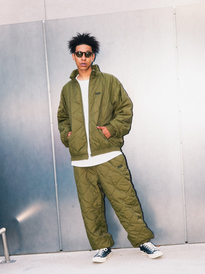 ミリタリーライナーをベースにしながら、シルエットやディテールを実用的にアップデート。ボリュームのあるシルエットに、中綿とウェーブ状のキルティングが表情と機能を両立。同素材のジャケットとセットアップも可能で、スタイリングの幅を広げる一本。ミリタリーライクな3色展開で、秋冬らしいカラーでまとめています。
